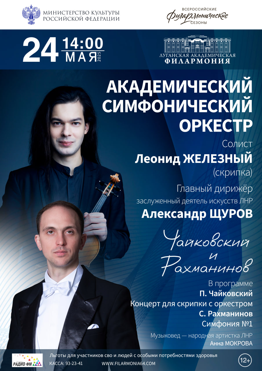 Программа концерта включает знаменитый скрипичный концерт П.И. Чайковского и «Первую симфонию» С.В. Рахманинова. Эти два произведения великих русских композиторов – два противоположных полюса глубоких переживаний – радостных и трагических.
