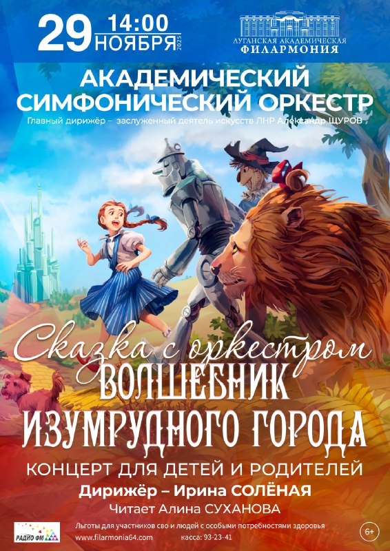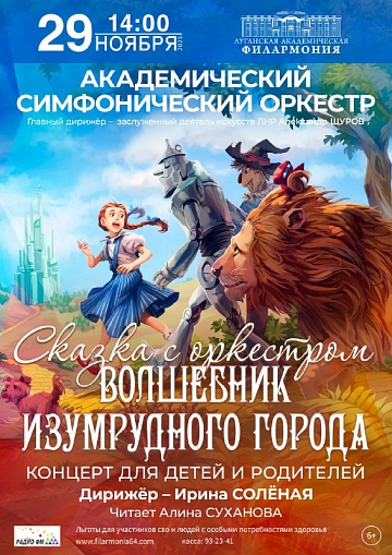 Симфонический оркестр, под управлением дирижера Ирины Соленой, исполнит программу «Сказка с оркестром. Волшебник Изумрудного города». Под чарующую музыку оркестра и художественное слово Алины Сухановой, зрители окунутся в удивительный мир приключений, дружбы и волшебства, который так любят и дети, и взрослые.