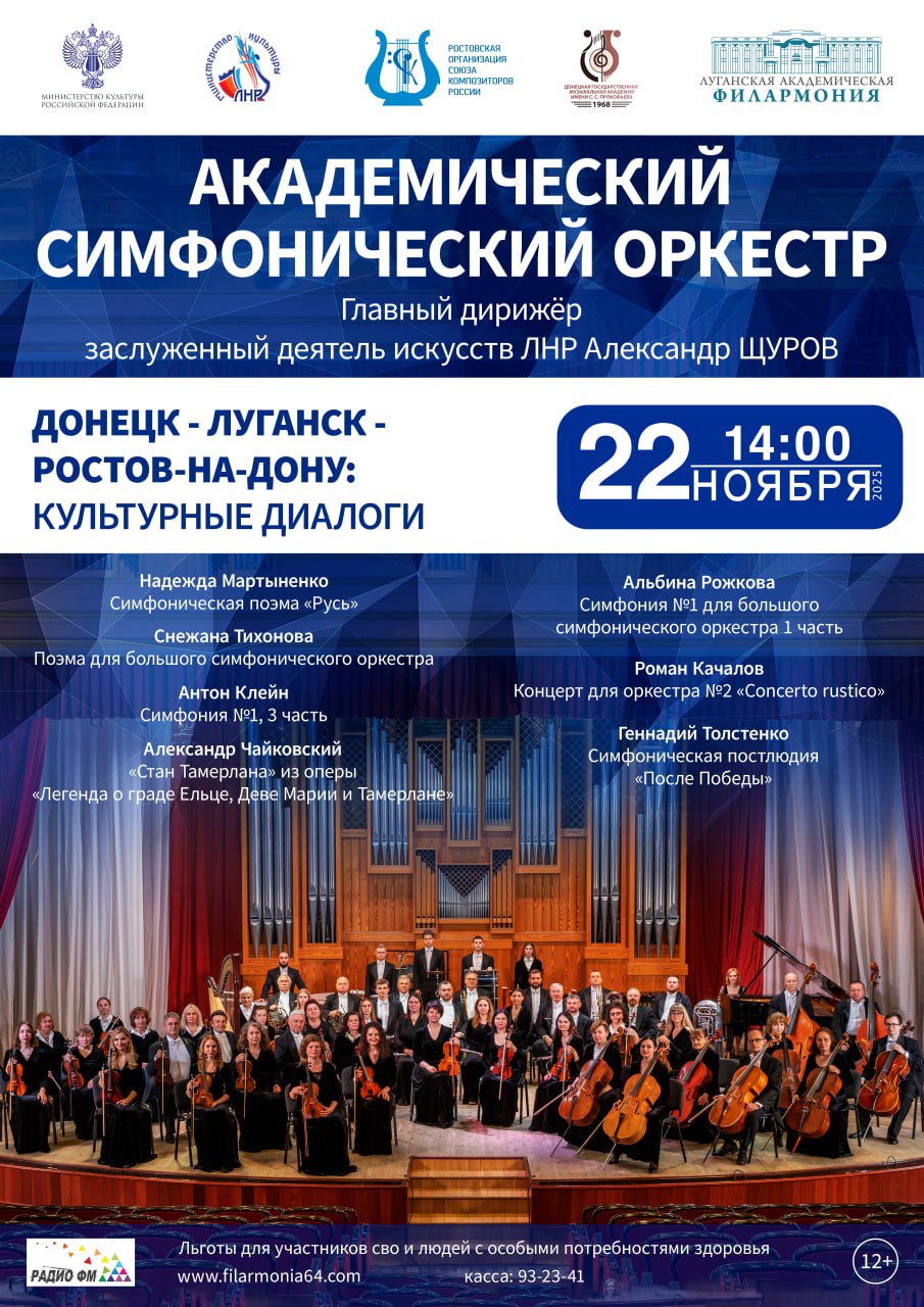 Концерт современной музыки, в котором свое творчество зрителям подарят композиторы Луганска, Донецка и Ростова-на-Дону. Академический симфонический оркестр исполнит программу под управлением заслуженного деятеля искусств ЛНР Александра Щурова.