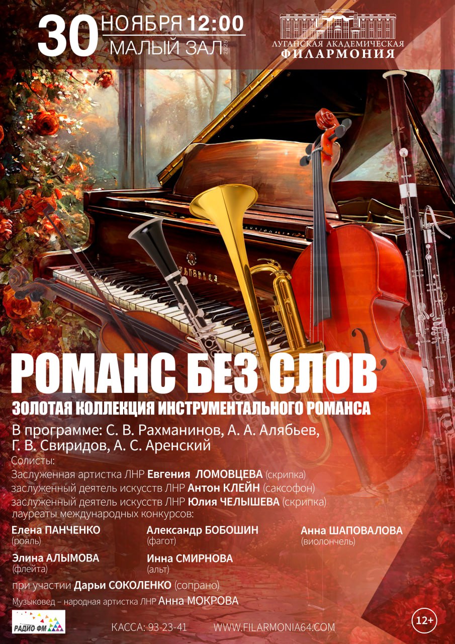 Ведущие солисты и коллективы филармонии представят зрителям концерт, приуроченный ко Дню Героев Отечества. Это не просто программа, а настоящее путешествие сквозь время, где каждая нота, каждое слово проникнуто гордостью за нашу Родину и ее героев, которые стали для нее опорой и защитой. Прозвучат такие композиции, как «Время» (муз. А. Островского, сл. Л. Ошанина), «Защитники Отечества» (муз. Е. Филатовой, сл. С. Вдовиченко), «Вокализ» (муз. С. Рахманинова), «Родина» ст. К. Симонова и другие.