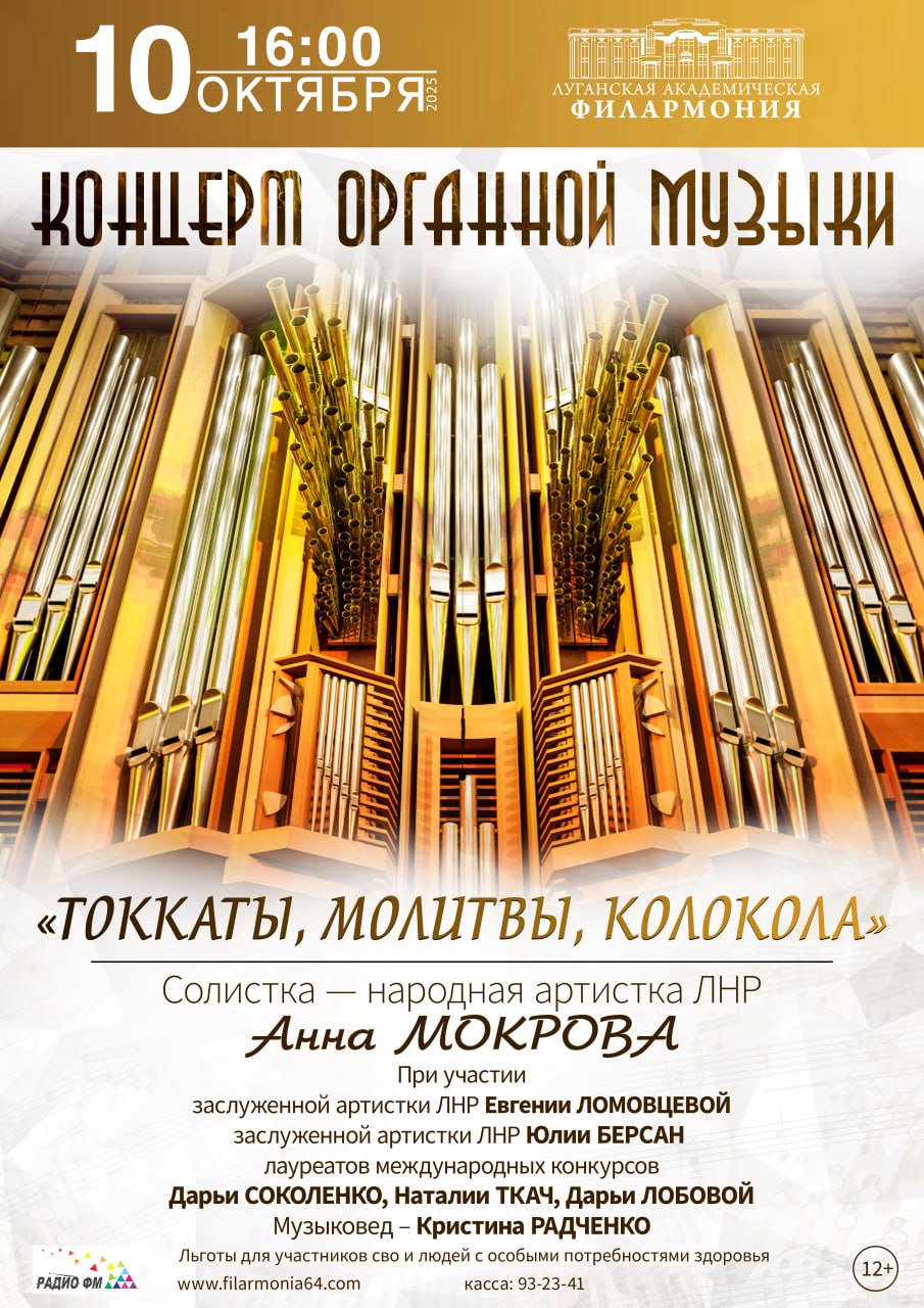 Жанровый спектр органной музыки очень разнообразен: это и быстрые произведения, наполненные бурными эмоциями, и медленные лиричные, и патетичные, обращённые к широким массам слушателей, и молитвенные, предстающие перед нами в виде философского размышления. Токкаты – самый виртуозный жанр, молитвы – тёплая, задушевная музыка, а колокола – яркие торжественные картины. В концертной программе органично соединяются все эти жанры и формы, чтобы подарить слушателю настоящий эмоциональный всплеск. Прозвучат произведения И. С. Баха, Д. Перголези, А. Варламова, Л. Люцци, Дж. Каччини и других композиторов разных эпох.