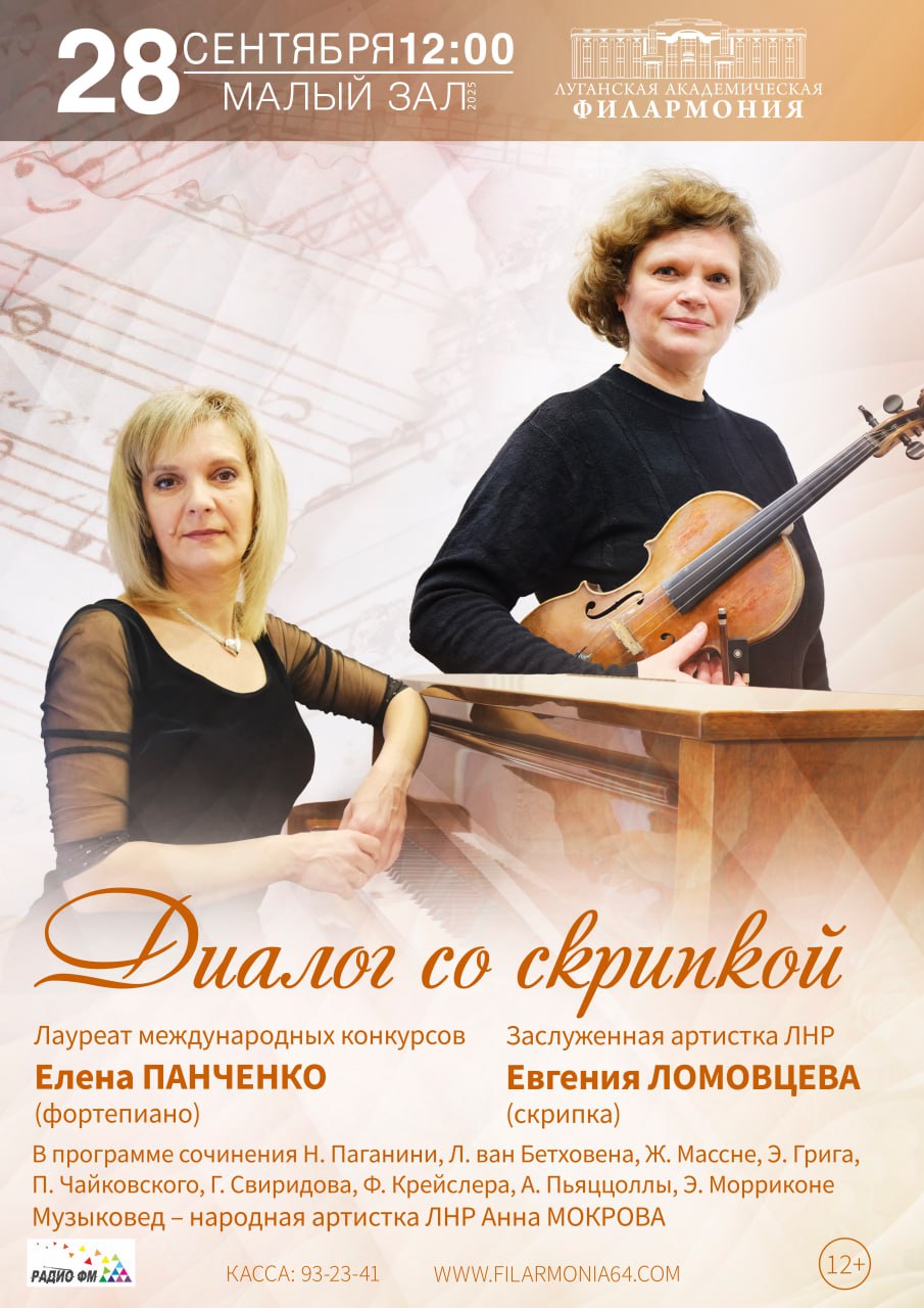 Пожалуй, никакие другие инструменты не могут конкурировать по популярности с «царицей музыки» скрипкой и «королём» роялем. У слушателей появится счастливая возможность насладиться и сольными шедеврами для скрипки и рояля, и их ансамблем, где каждый инструмент, не теряя своей индивидуальности, только подчеркивает звучание друг друга. Широкая жанровая палитра от Н. Паганини до Э. Морриконе превращает диалог инструментов в захватывающее путешествие по страницам музыкальной истории. Прозвучит музыка Н. Паганини, Л. ван Бетховена, Ж. Массне, Э. Грига, П. Чайковского, Г. Свиридова, Ф. Крейслера, А. Пьяццоллы, Э. Морриконе.