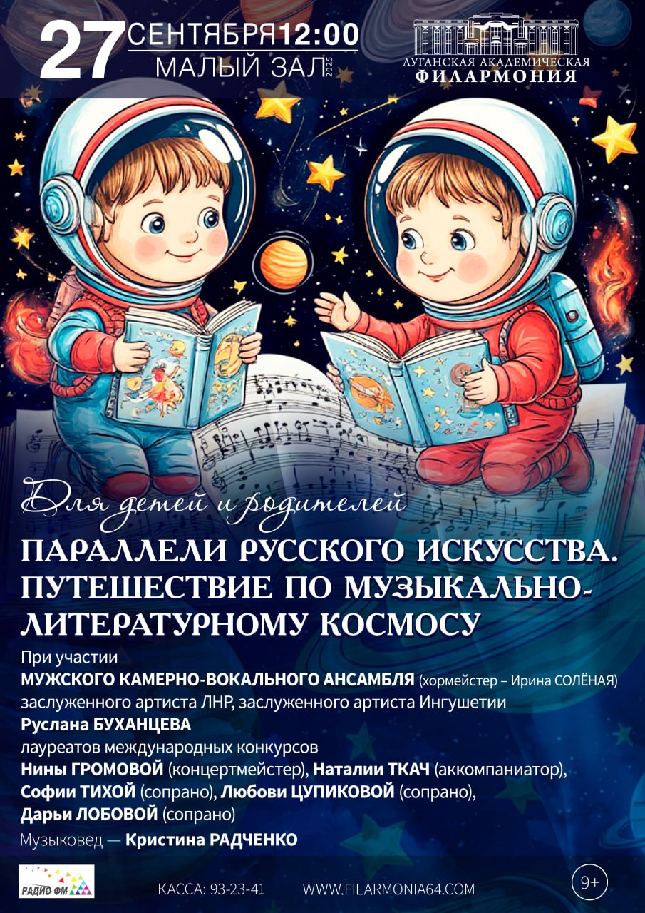 Вы никогда не задумывались о том, что знаменитые композиторы жили и творили, вдохновляясь творчеством величайших писателей и поэтов? Именно этой теме будет посвящен концерт, ведь в русском искусстве подобные параллели существовали всегда. Вы узнаете, почему композиторы часто создавали произведения на основе литературных сюжетов, с какими писателями и поэтами они не только сотрудничали, но и дружили, и как всё это повлияло на развитие русской музыки. В концертной программе прозвучат известные произведения русских композиторов – М. Глинки, П. Чайковского, А. Бородина, М. Мусоргского, Н. Римского-Корсакова и других.
