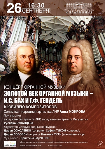 Бах и Гендель – два великих композитора эпохи барокко, которые родились в 1685 году с разницей в несколько недель, но так никогда и не встретившиеся лично. Два величайших немецких гения музыки, жившие в одну эпоху, более того – ровесники, вполне естественно, что их так часто сравнивают. Сравнивают их музыку, сравнивают судьбы. Органный концерт посвящён совместному юбилею композиторов и призван создать диалог между их произведениями. Эти величайшие музыканты будут разговаривать на языке бессмертных шедевров спустя 340 лет со дня своего рождения.