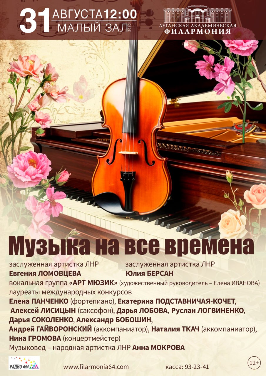 Классическая музыка представлена сочинениями И. Баха для клавишных инструментов и фагота. Вокальная и скрипичная музыка композиторов-романтиков – Ф. Шуберта, Дж. Россини, Дж. Верди и П. Чайковского пленяет щедрой мелодикой, богатыми красками и оттенками в передаче чувств и настроений. Классическая эстрада, погружение в область джаза переносит нас в атмосферу ХХ века. А любимые произведения наших современников – М. Дунаевского, А. Пахмутовой, А. Зацепина подчеркивают, что настоящая музыка не имеет временных границ, она не живет в плену одного стиля или направления, она – для всех и навсегда.