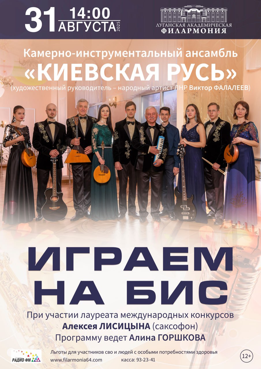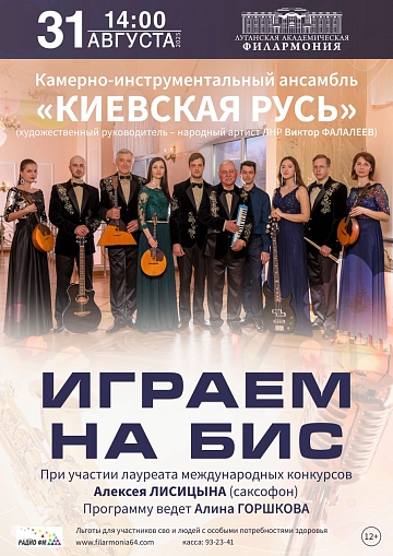 Для вас артисты камерно-инструментального ансамбля «Киевская Русь» собрали в один концерт лучшие композиции последних десятилетий. Каждая мелодия выдержала испытание временем, и сегодня не перестает находить отклик в душах слушателей.